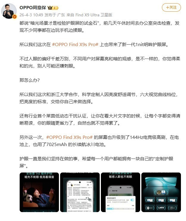 所以我们这次在 #OPPO Find X9s Pro# 上也带来了新一代1nit明眸护眼屏。